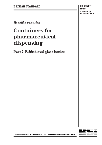 Specification for containers pharmaceutical dispensing Ribbed oval glass bottles