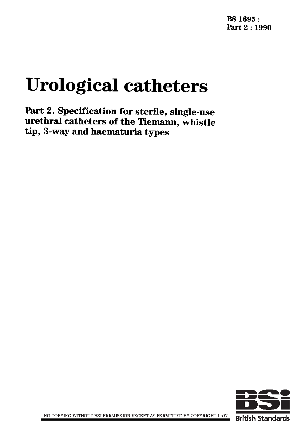 Urological catheters Specification for sterile, single-use urethral of the Tiemann, whistle tip, 3-way and haematuria types