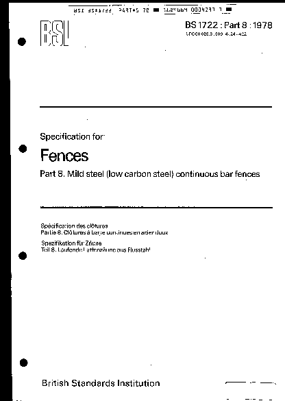 Fences Specification for mild steel (low carbon steel) continuous bar fences and hurdles