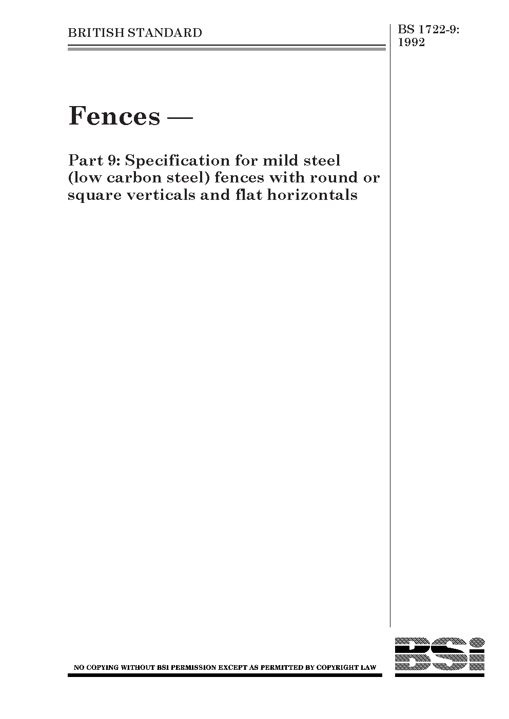 Specification for fences. Mild steel or wrought iron unclimable fences with round or square verticals and flat posts and horizontals