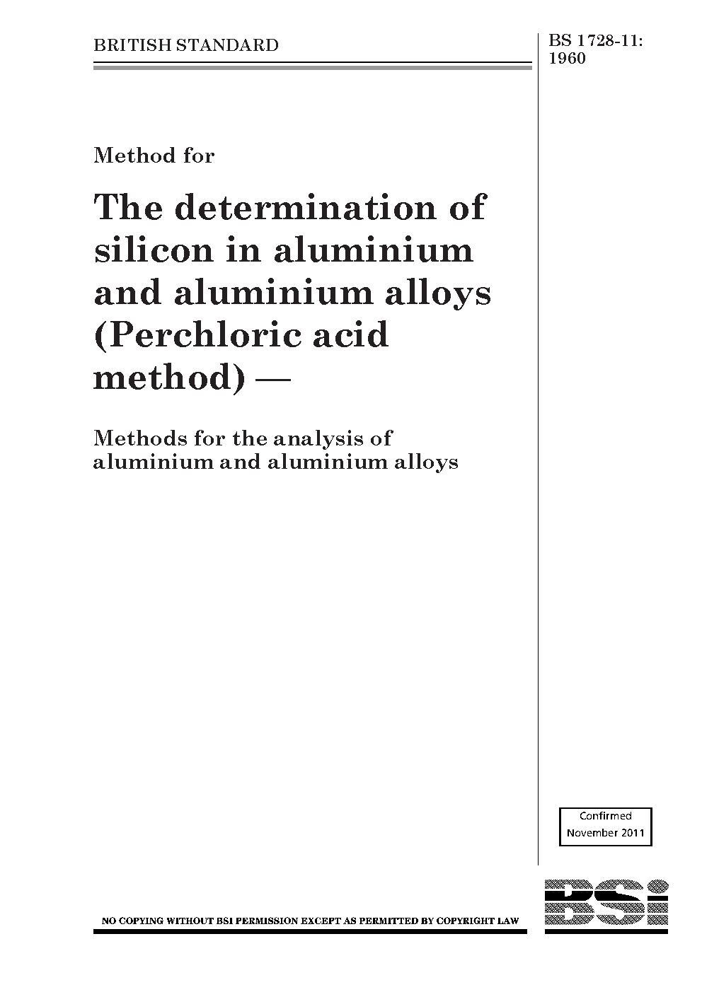 Methods for the analysis of aluminium and alloys Determination silicon (perchloric acid method)