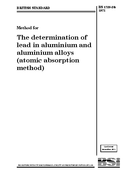 Methods for the analysis of aluminium and alloys Determination lead (atomic absorption method)