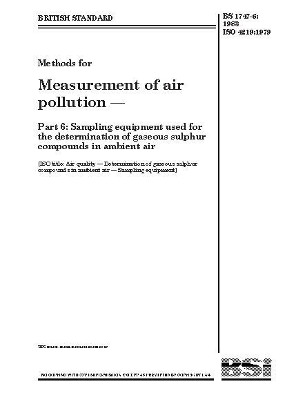 Methods for measurement of air pollution Sampling equipment used the determination gaseous sulphur compounds in ambient