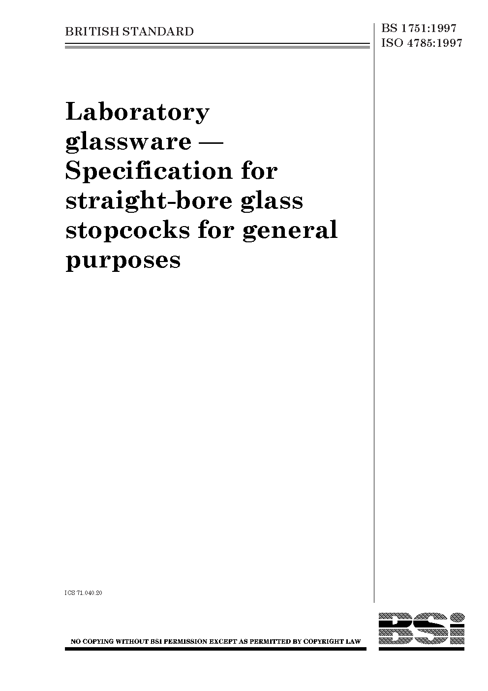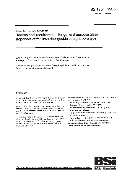 Specification for dimensional requirements for general purpose glass stopcocks of the interchangeable straight bore type