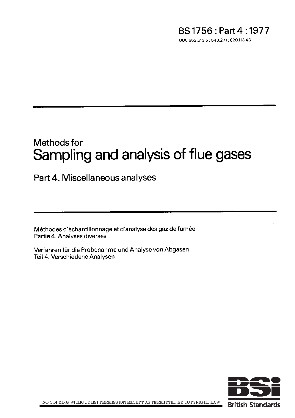 Methods for sampling and analysis of flue gases Miscellaneous analyses