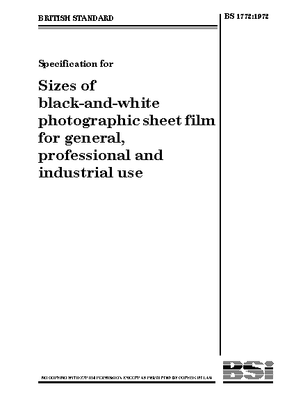 Specification for sizes of black-and-white photographic sheet film for general, professional and industrial use