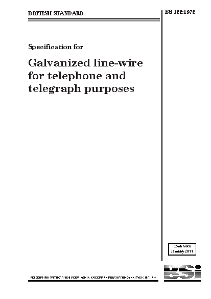 Specification for galvanized line-wire for telephone and telegraph purposes