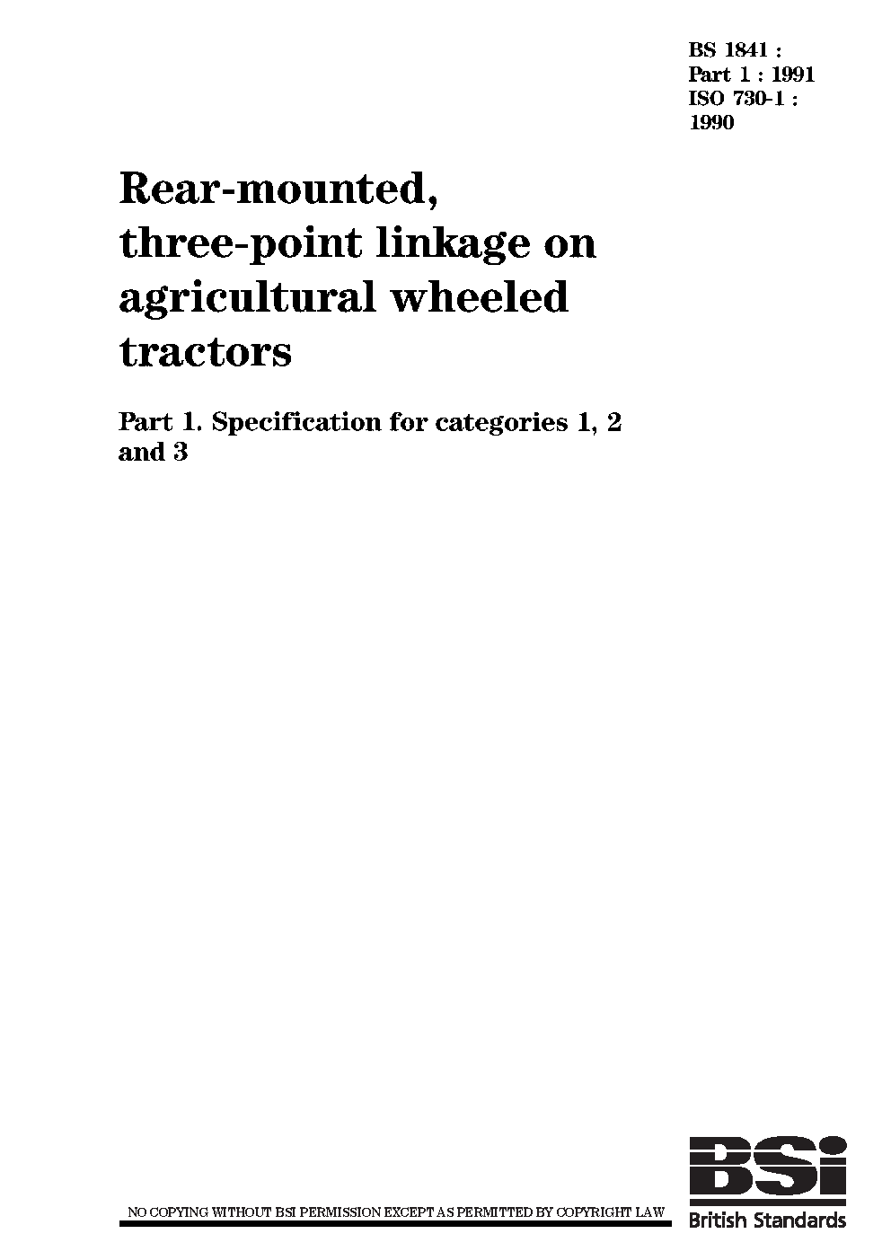 Rear-mounted, three-point linkage on agricultural wheeled tractors Specification for categories 1, 2 and 3