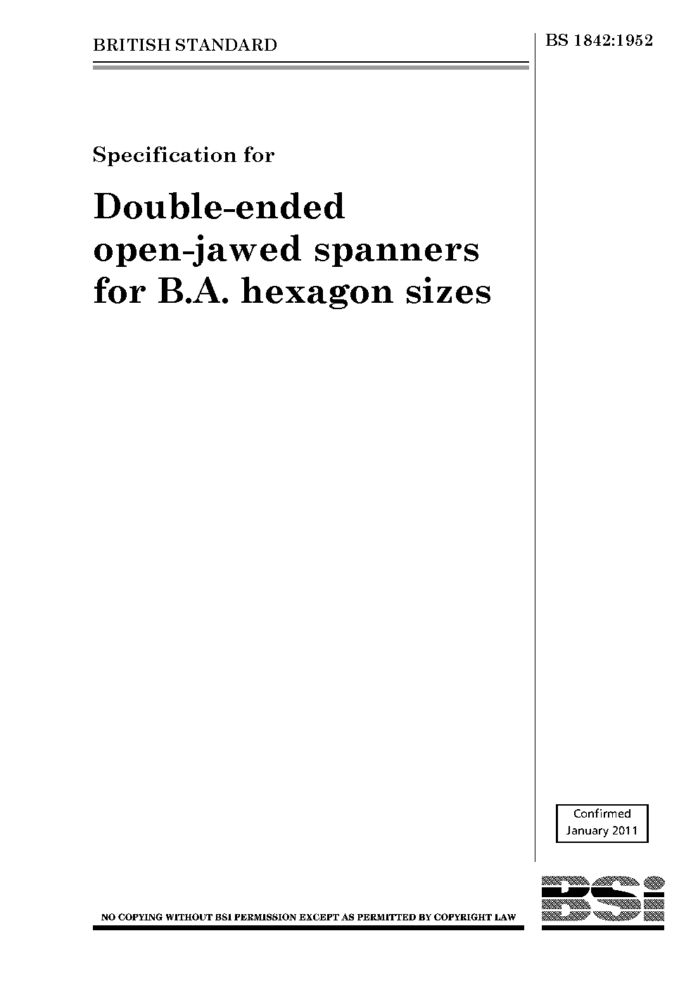 Specification for double-ended open-jawed spanners for B.A. hexagon sizes