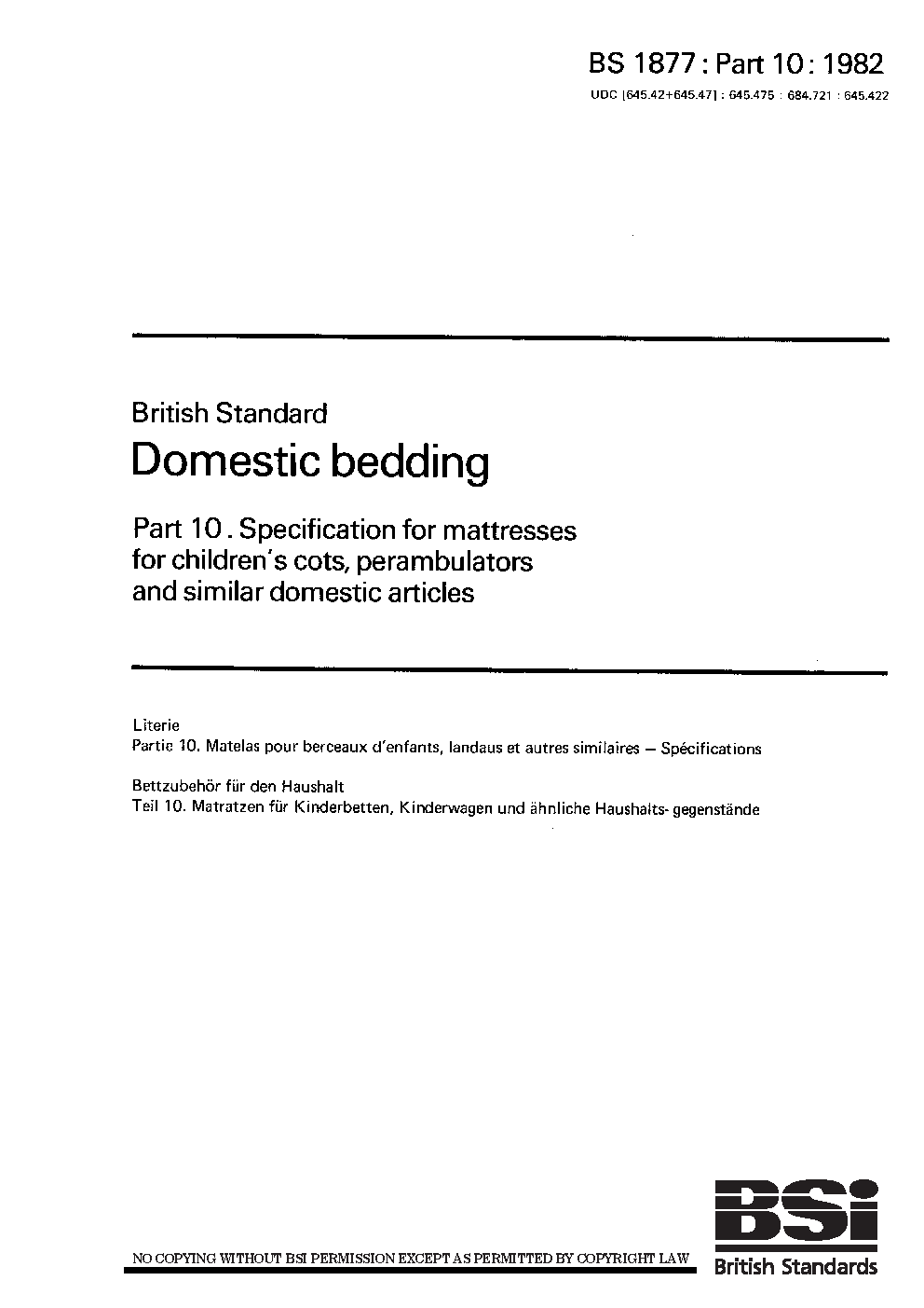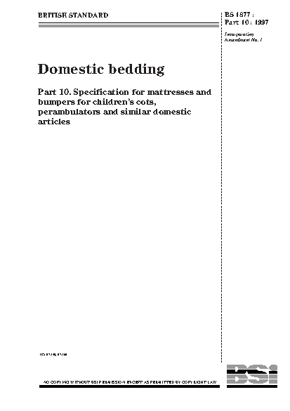 Domestic bedding Specification for mattresses and bumpers children’s cots, perambulators similar domestic articles