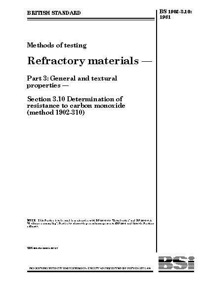 Methods of testing refractory materials. General and textural properties Determination resistance to carbon monoxide (method 1902-310)