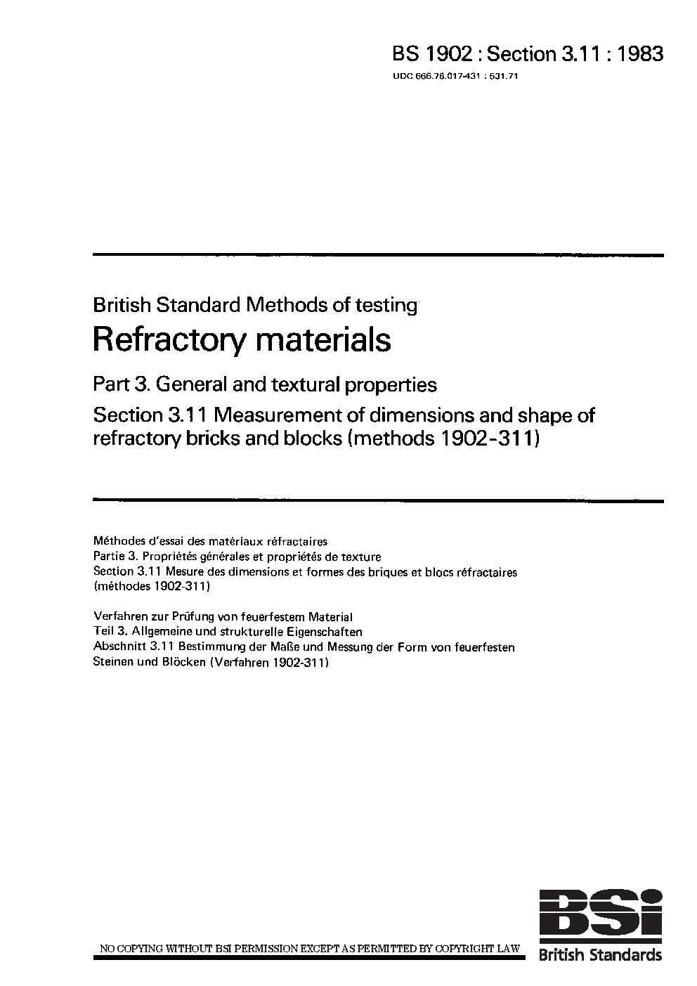 Methods of testing refractory materials. General and textural properties Measurement dimensions shape bricks blocks (methods 1902-311)