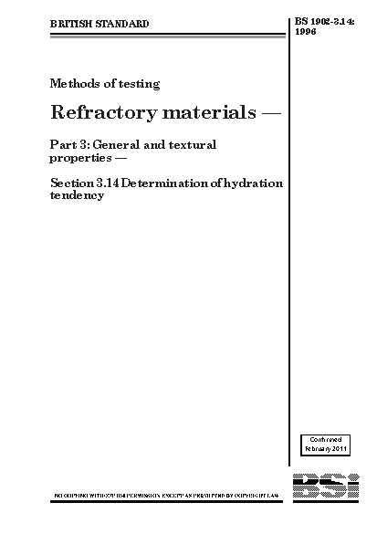 Methods of testing refractory materials. General and textural properties Determination hydration tendency