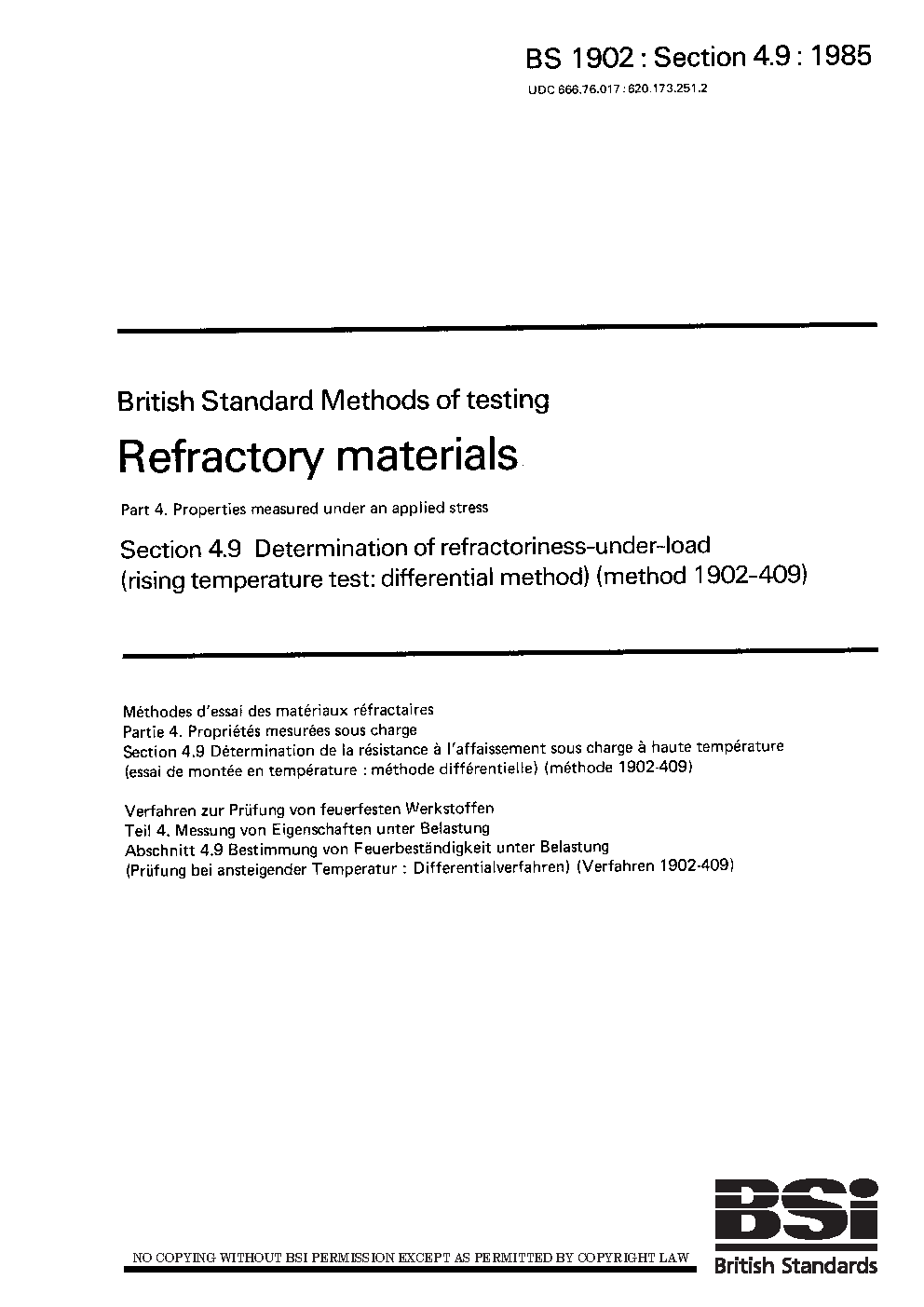 Methods of testing refractory materials. Properties measured under an applied stress Determination refractoriness-under-load (rising temperature test: differential method) (method 1902-409)