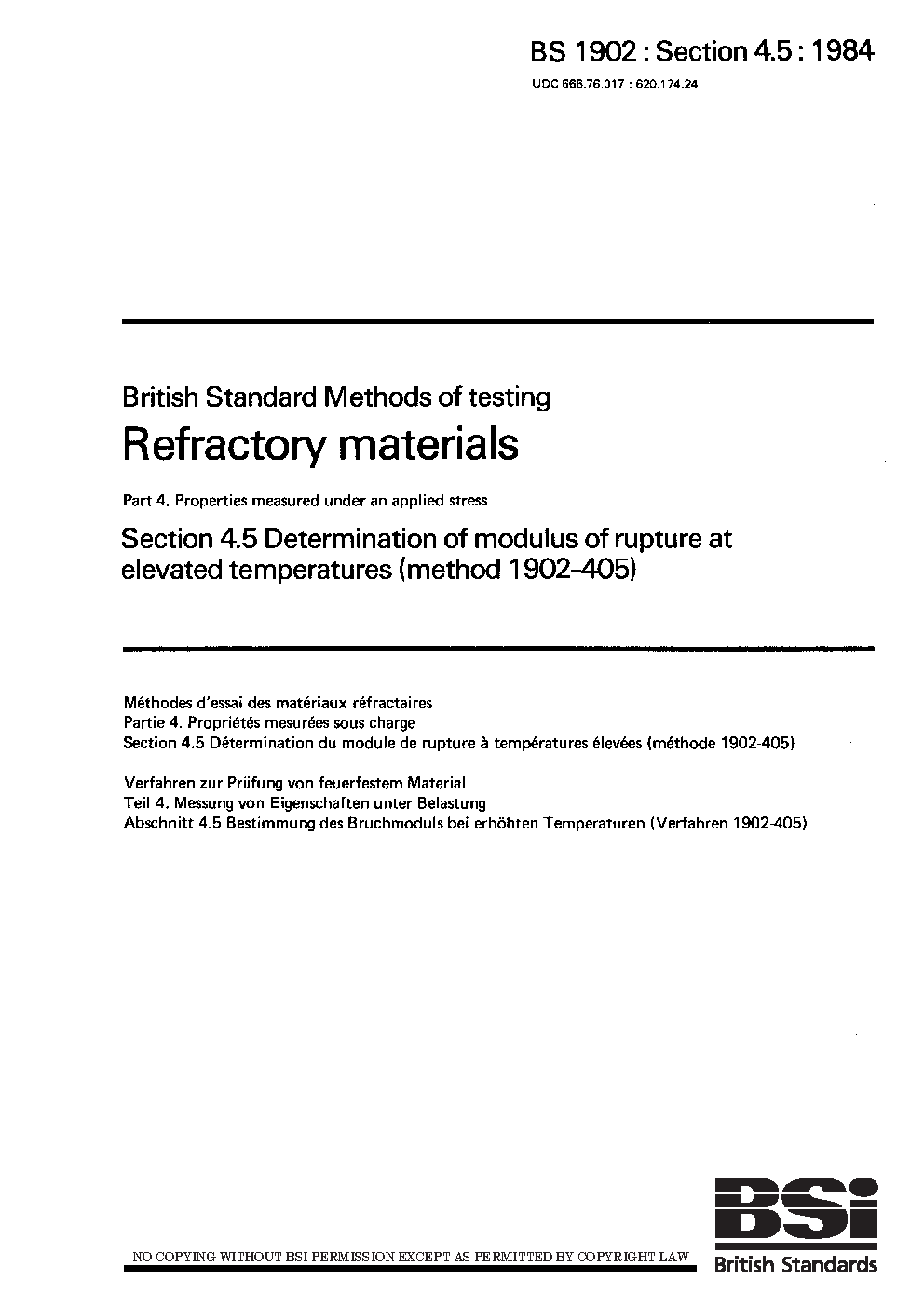 Methods of testing refractory materials. Properties measured under an applied stress Determination modulus rupture at elevated temperatures (method 1902-405)