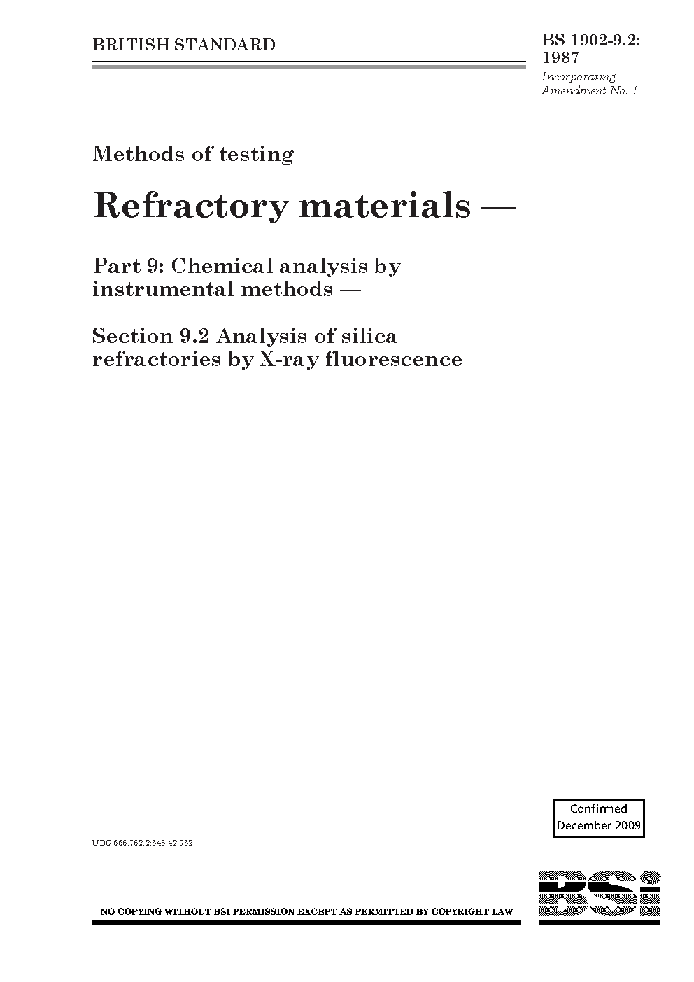 Methods of testing refractory materials. Chemical analysis by instrumental methods Analysis silica refractories X-ray fluorescence