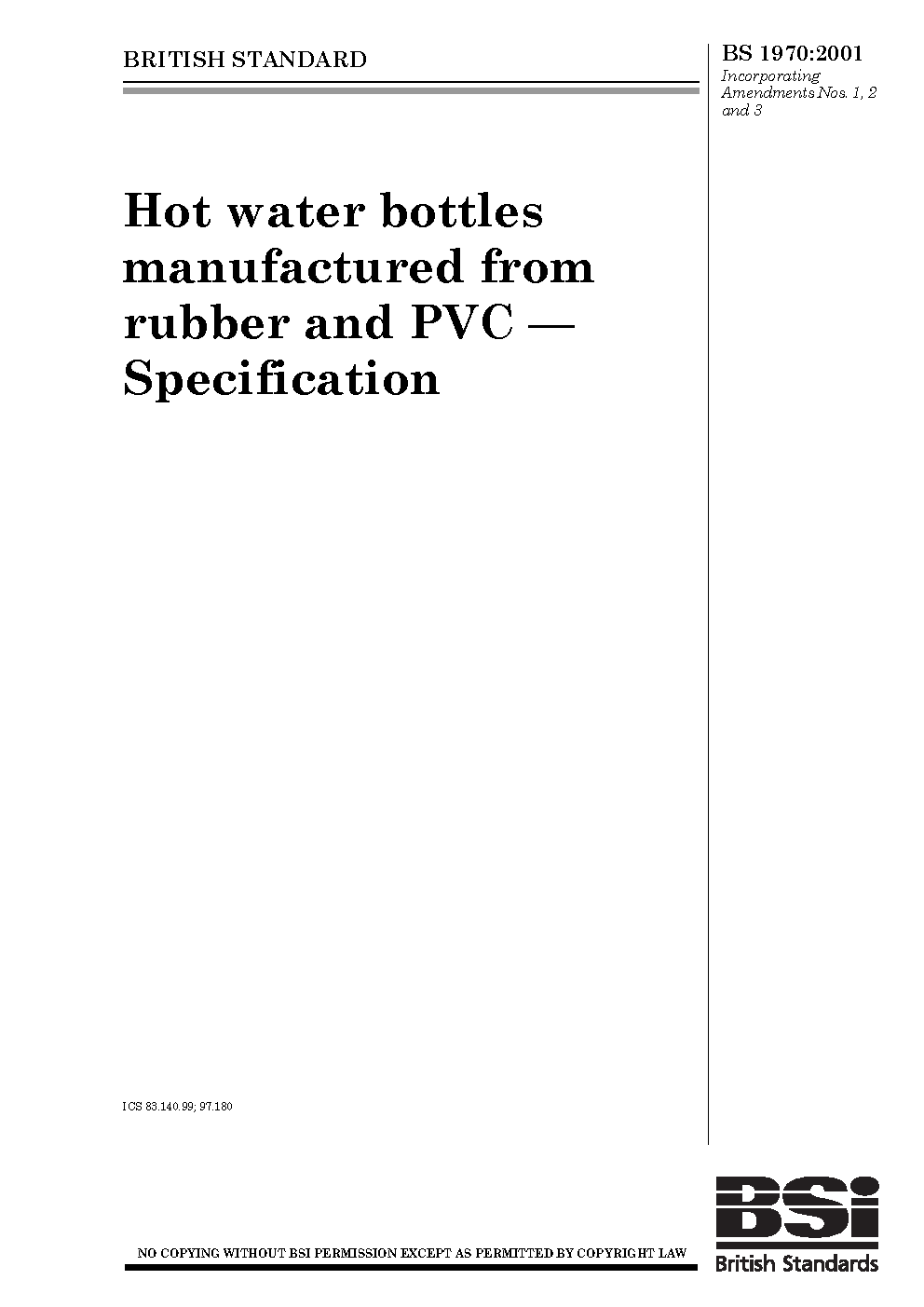 Specification for moulded rubber hot water bottles. (for hospital use)