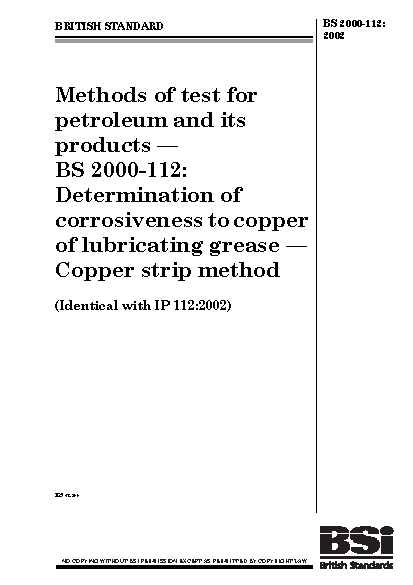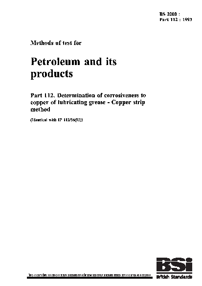 Methods of test for petroleum and its products Determination corrosiveness to copper lubricating grease. Copper strip method