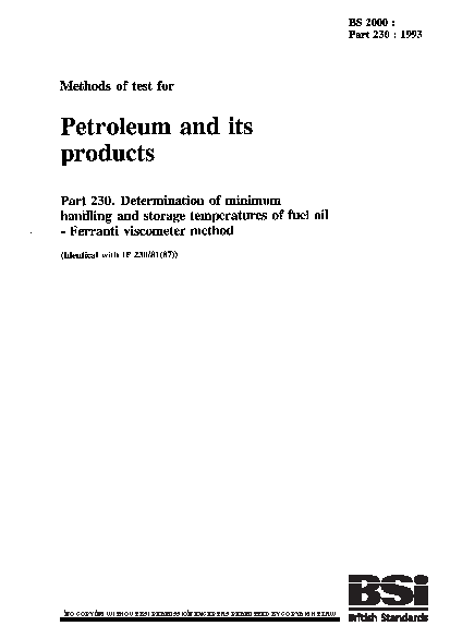 Methods of test for petroleum and its products Pumpability industrial fuel oils