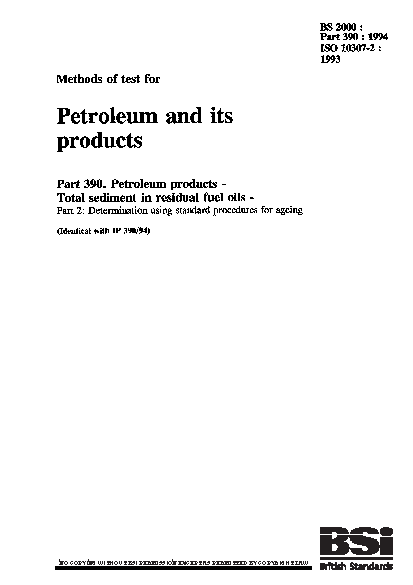 Methods of test for petroleum and its products Petroleum products. Total sediment in residual fuel oils. Determination using standard procedures ageing
