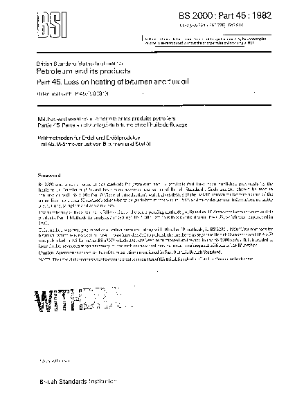 Methods of test for petroleum and its products Determination loss on heating bitumen flux oil
