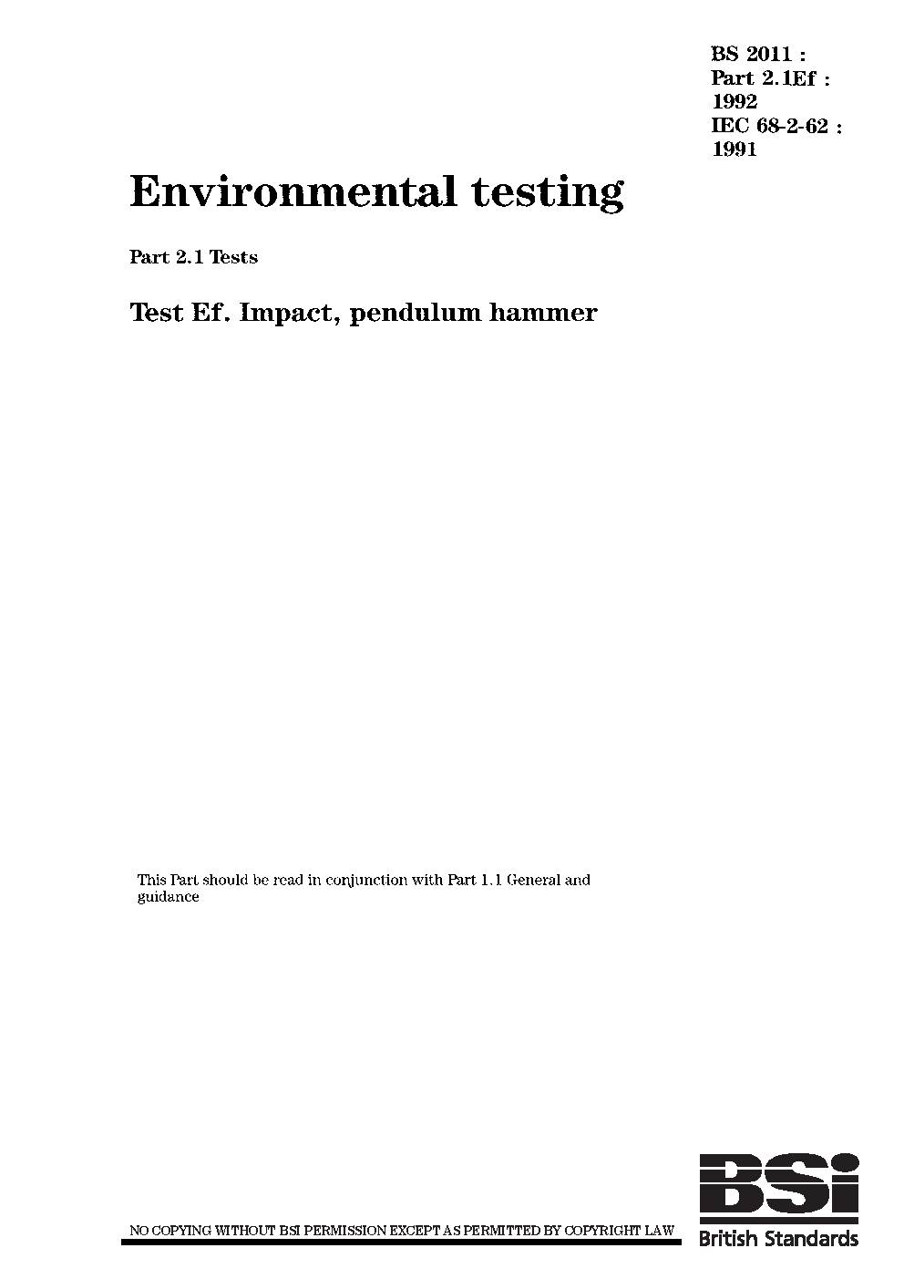 Environmental testing. Tests Test Ef. Impact, pendulum hammer