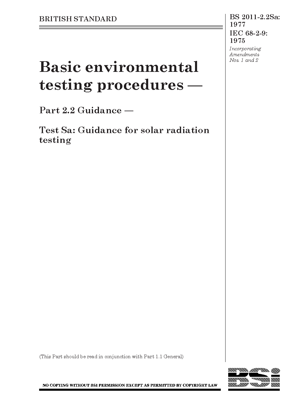Environmental testing. Guidance Test Sa. for solar radiation testing