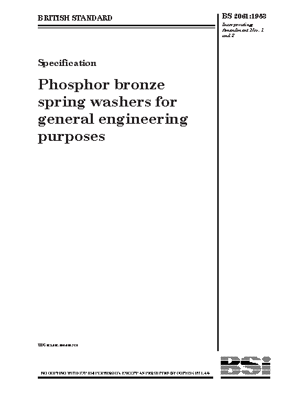 Specification for phosphor bronze spring washers for general engineering purposes