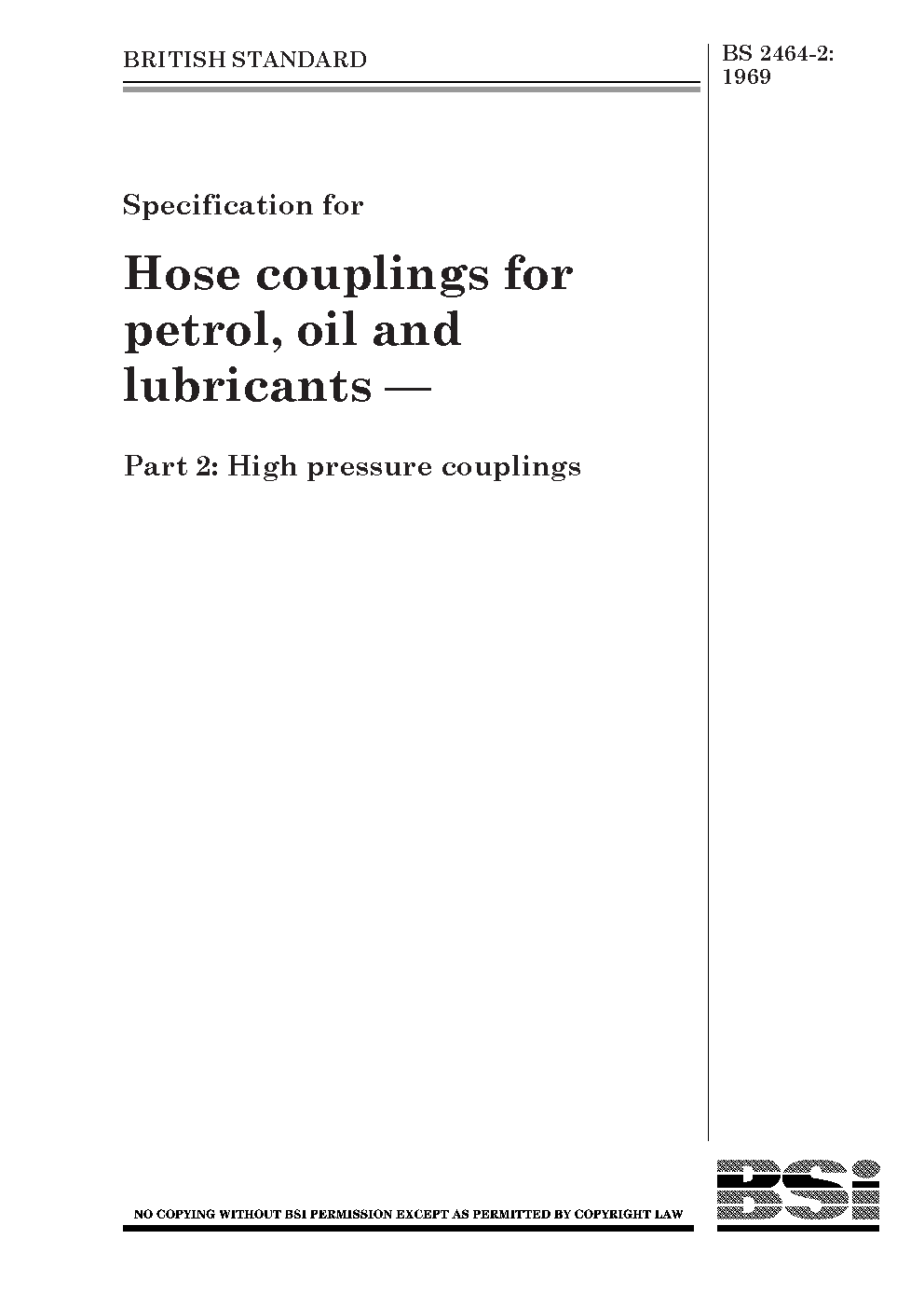 Specification for hose couplings petrol, oil and lubricants High pressure