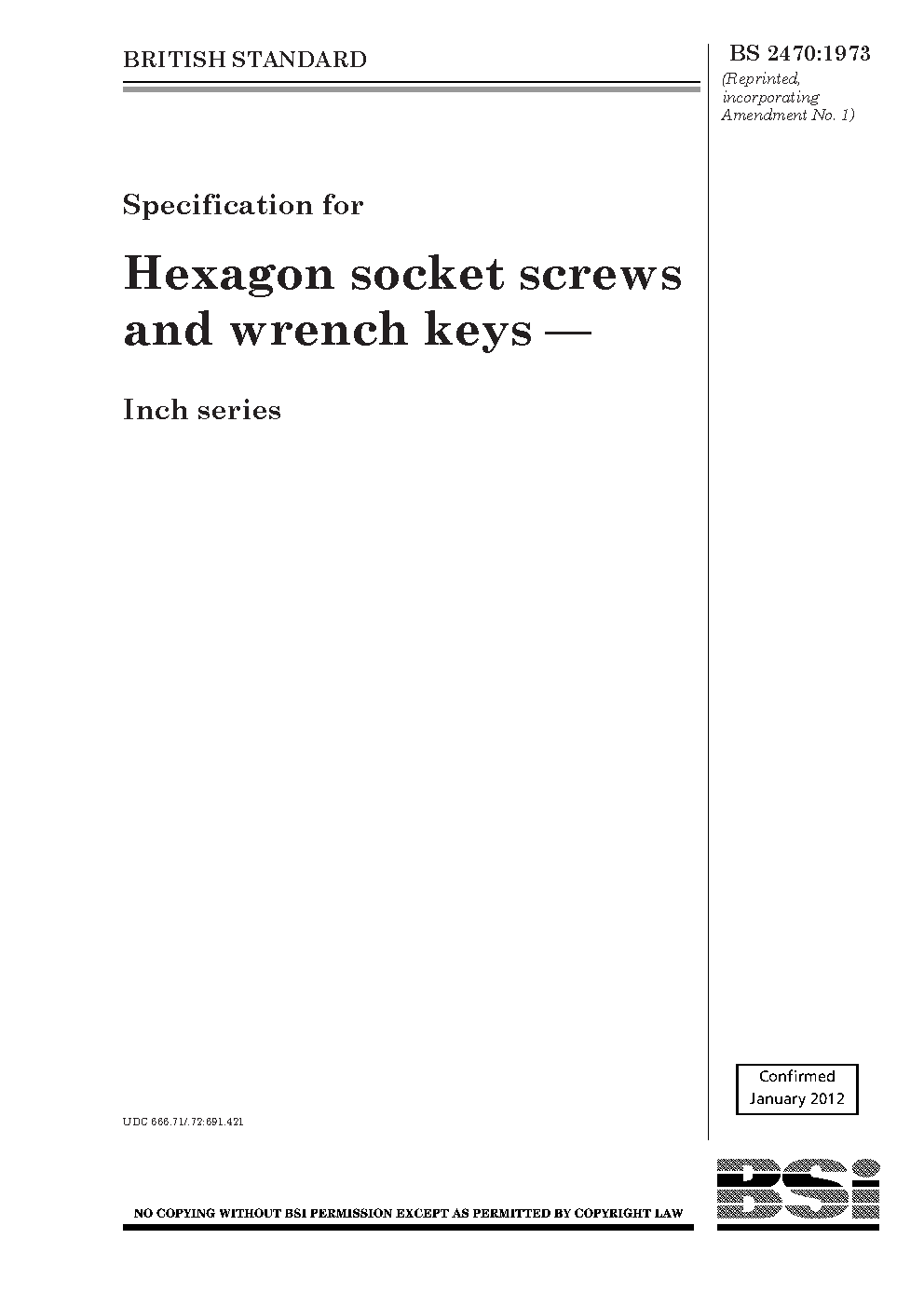Cap-head fasteners;G-series screw threads;Dimensions;Wrenches;Countersunk fasteners;Size;Socket-head fasteners;Threaded fasteners;Imperial system;BSF screw threads;Unified screw threads;Screws (bolts);Hand tools;Hexagonal shape;Diameter;Set screws;Alloy steels;British Association screw threads;Length;Mechanical properties of materials;External-thread fasteners;Whitworth screw threads;Socket wrenches