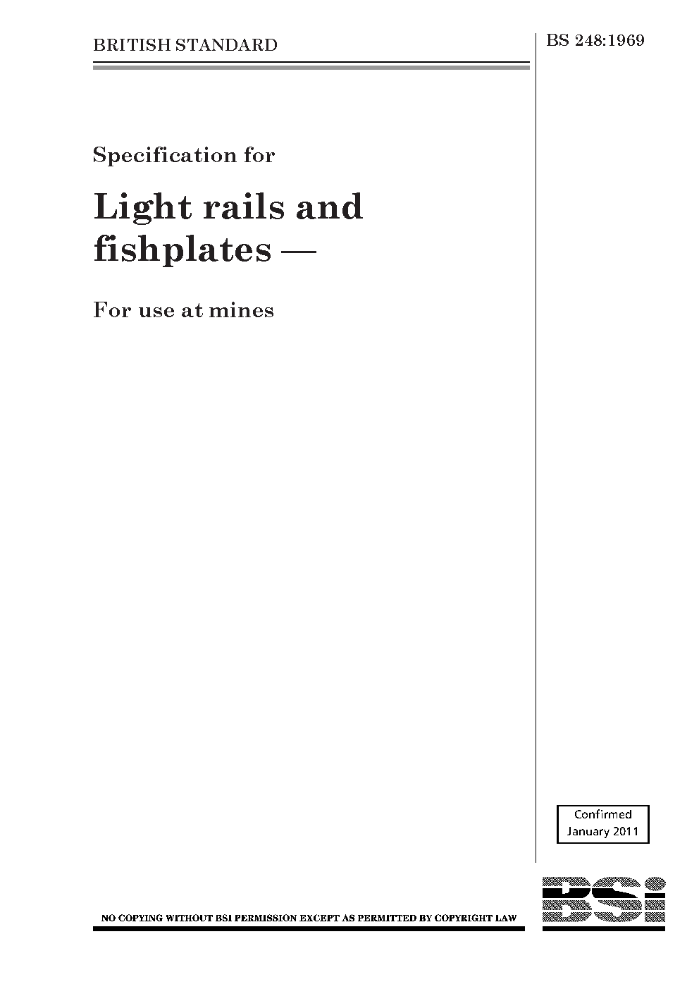 Light-duty;Railway fixed equipment;Mining equipment;Shape;Fish plates;Rails;Bolts;Fasteners;Dimensional tolerances;Position;Tensile strength;Holes;Railway equipment;Railway track;Dimensions;Railway rails;Flat-bottom rails;Bridge rails