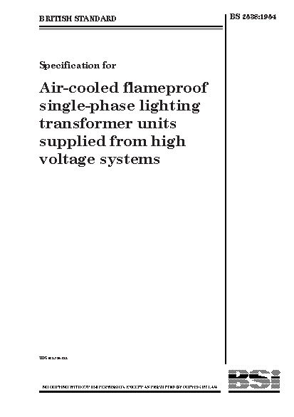 Specification for air-cooled flameproof single-phase lighting transformer units supplied from high voltage systems