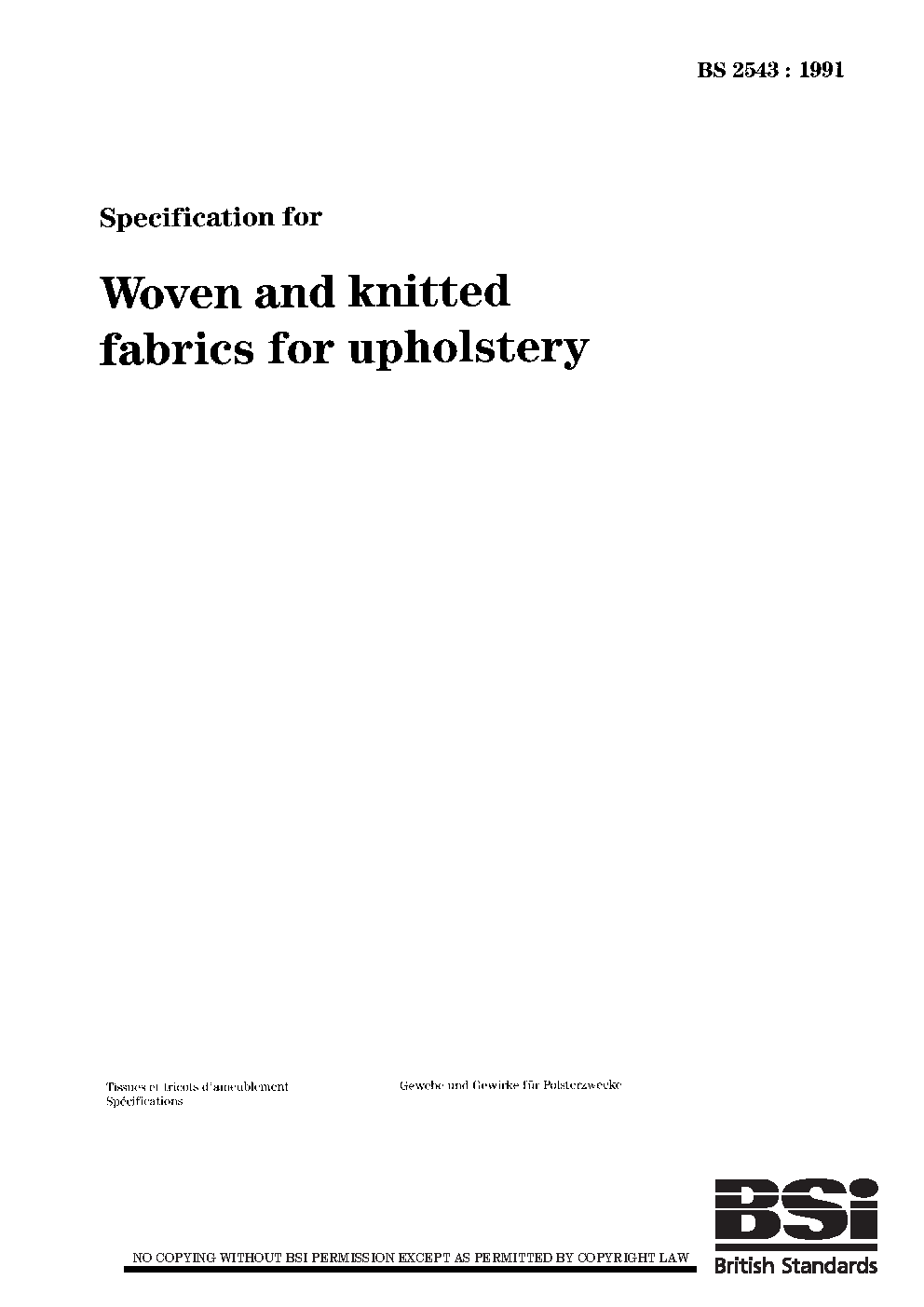Upholstery fabrics for end use applications. Classification