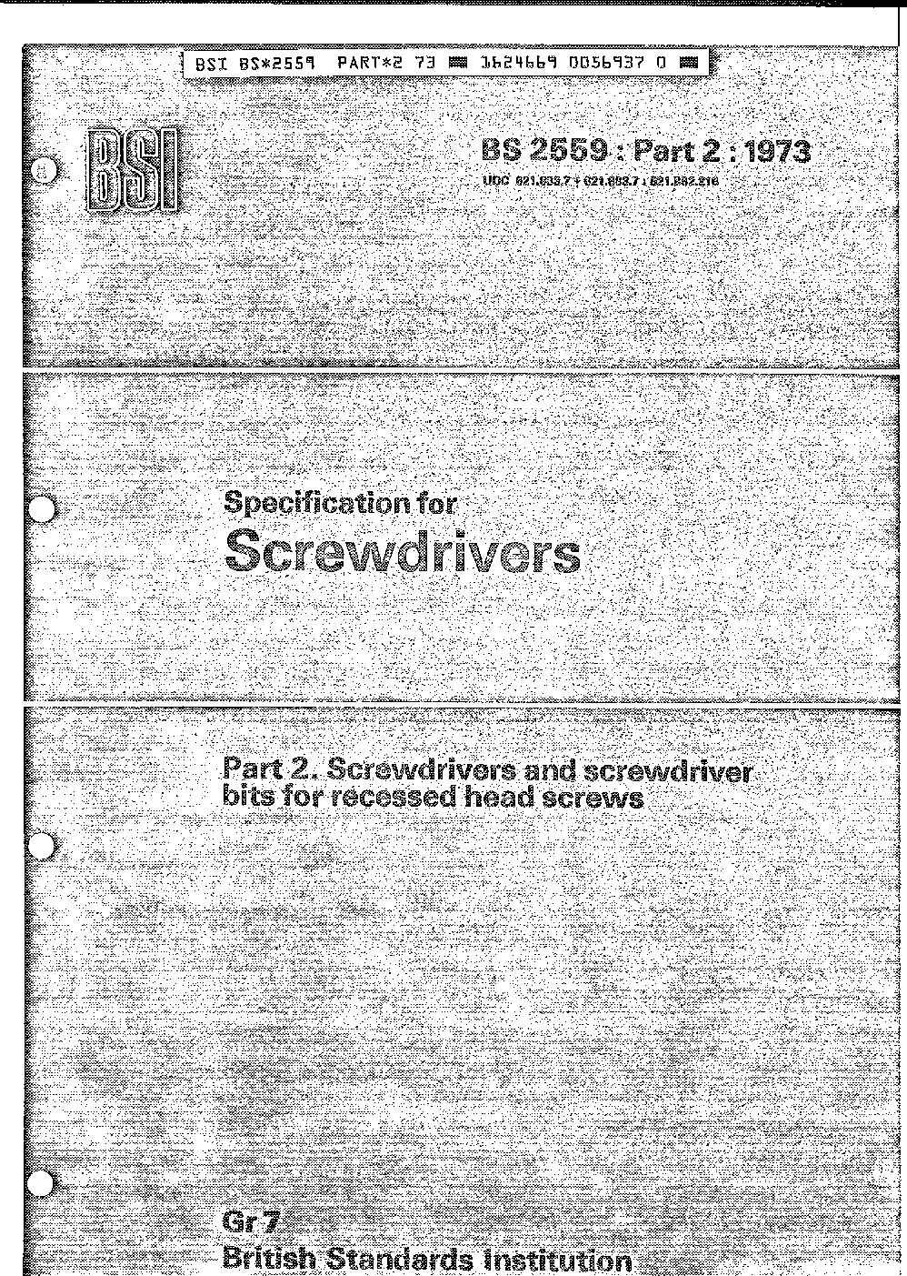 Specification for screwdrivers Screwdrivers and screwdriver bits recessed head screws