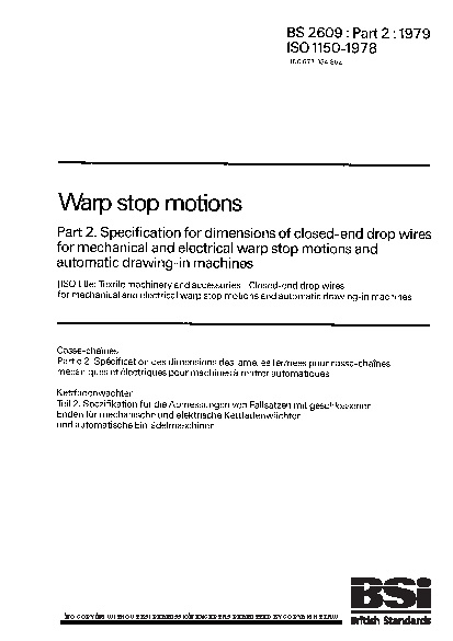 Warp stop motions Specification for dimensions of closed-end drop wires mechanical and electrical warp automatic drawing-in machines