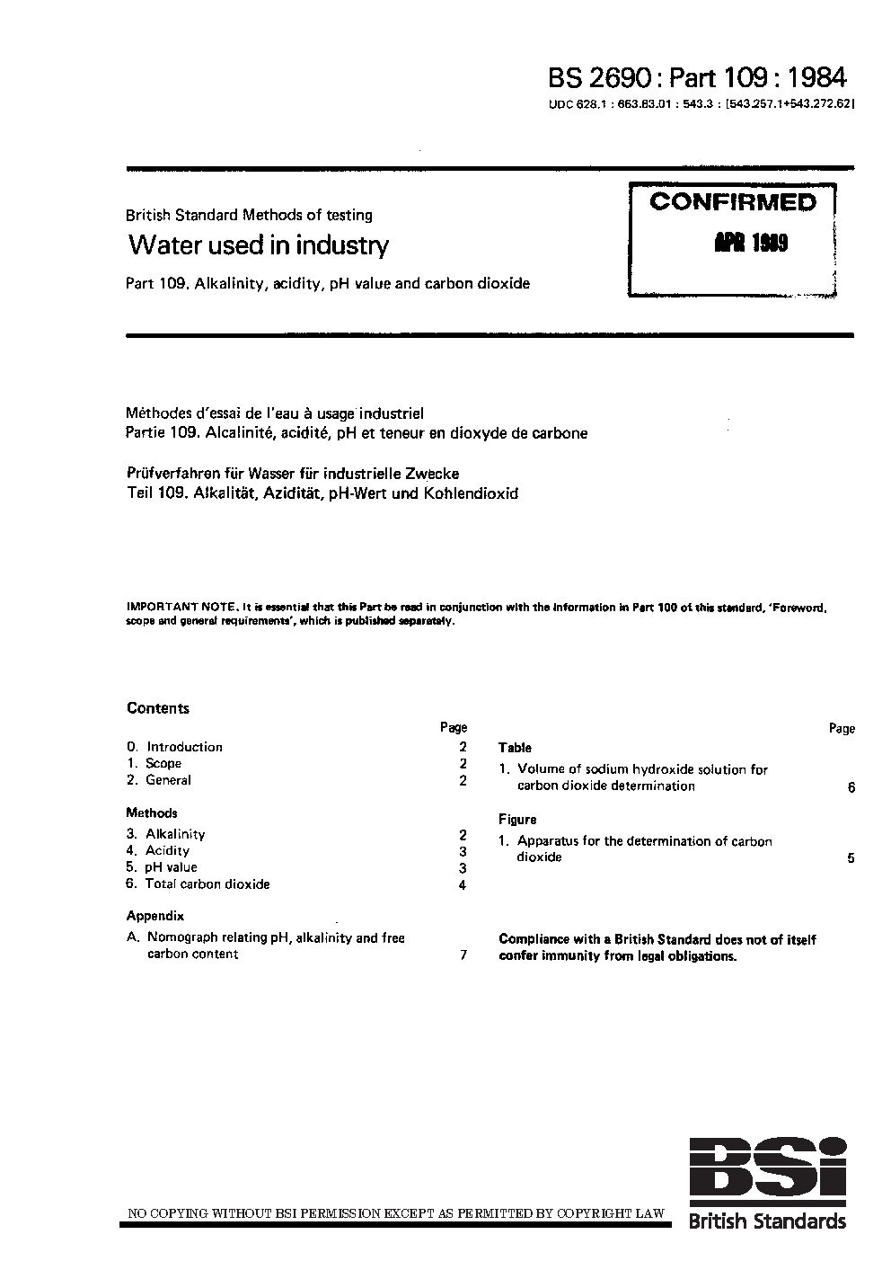 Methods of testing water used in industry Alkalinity, acidity, pH value and carbon dioxide