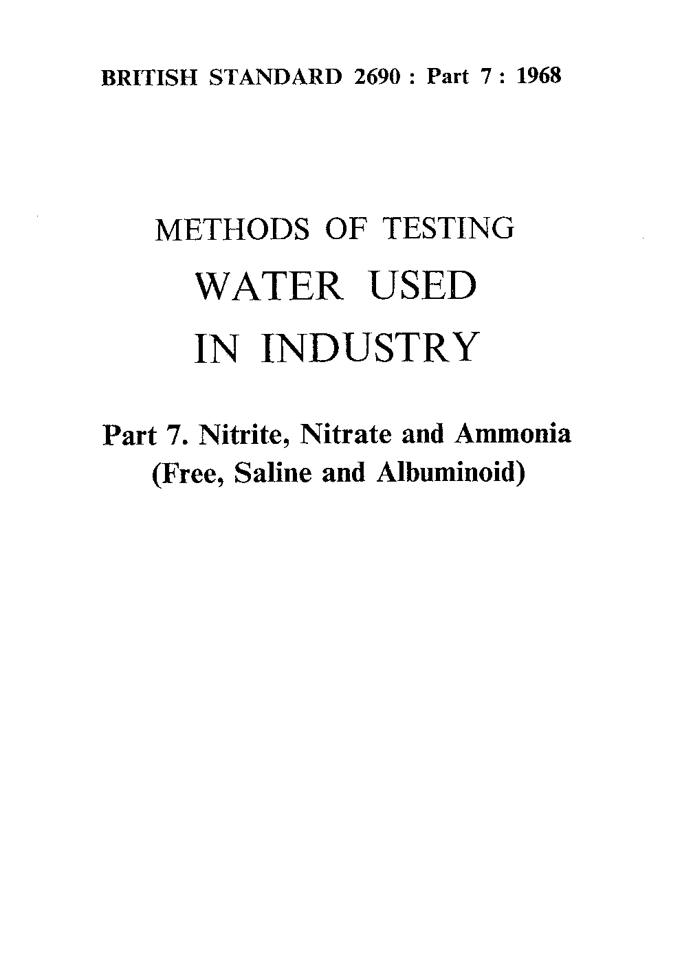 Methods of testing water used in industry Nitrite, nitrate and ammonia (free, saline albuminoid)