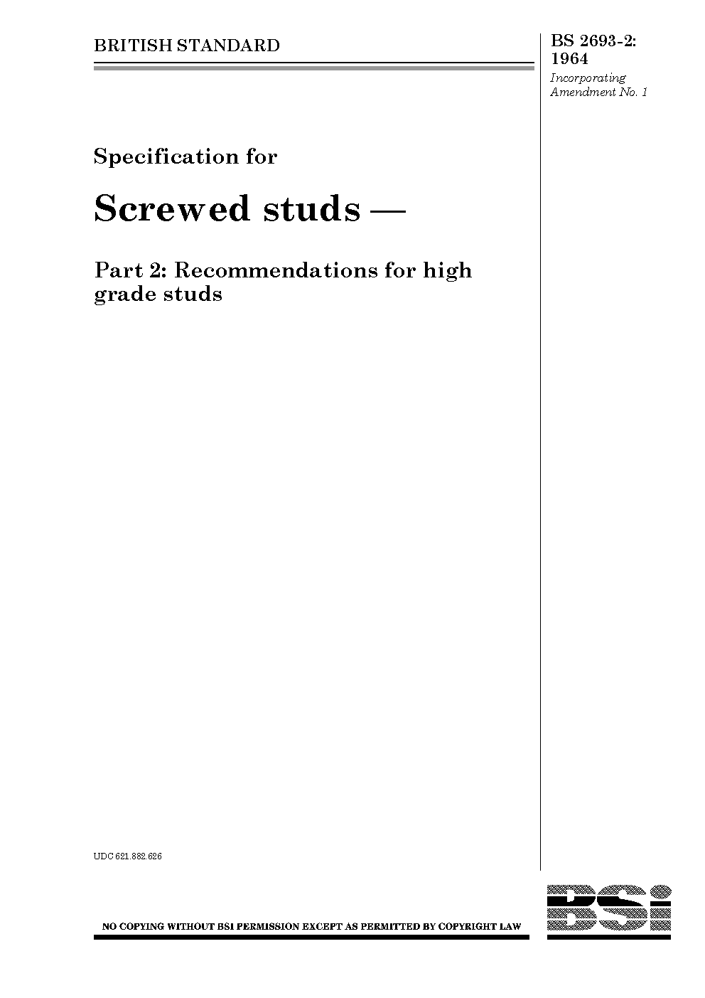 Specification for screwed studs Recommendations high grade (with Class 5 interference fit threads to American Standard ASA B1.12)