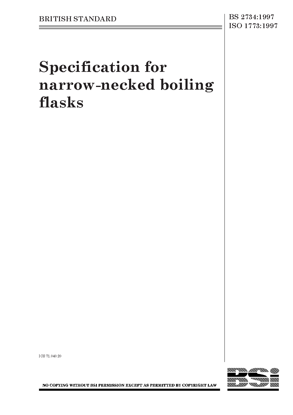 Specification for boiling flasks (narrow-necked), conical, flat bottom and round bottom