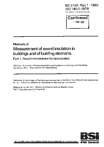 Measurement of sound insulation in buildings and building elements Recommendations for laboratories