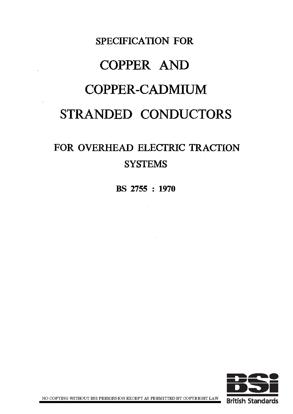 Specification for copper and copper-cadmium stranded conductors for overhead electric traction systems