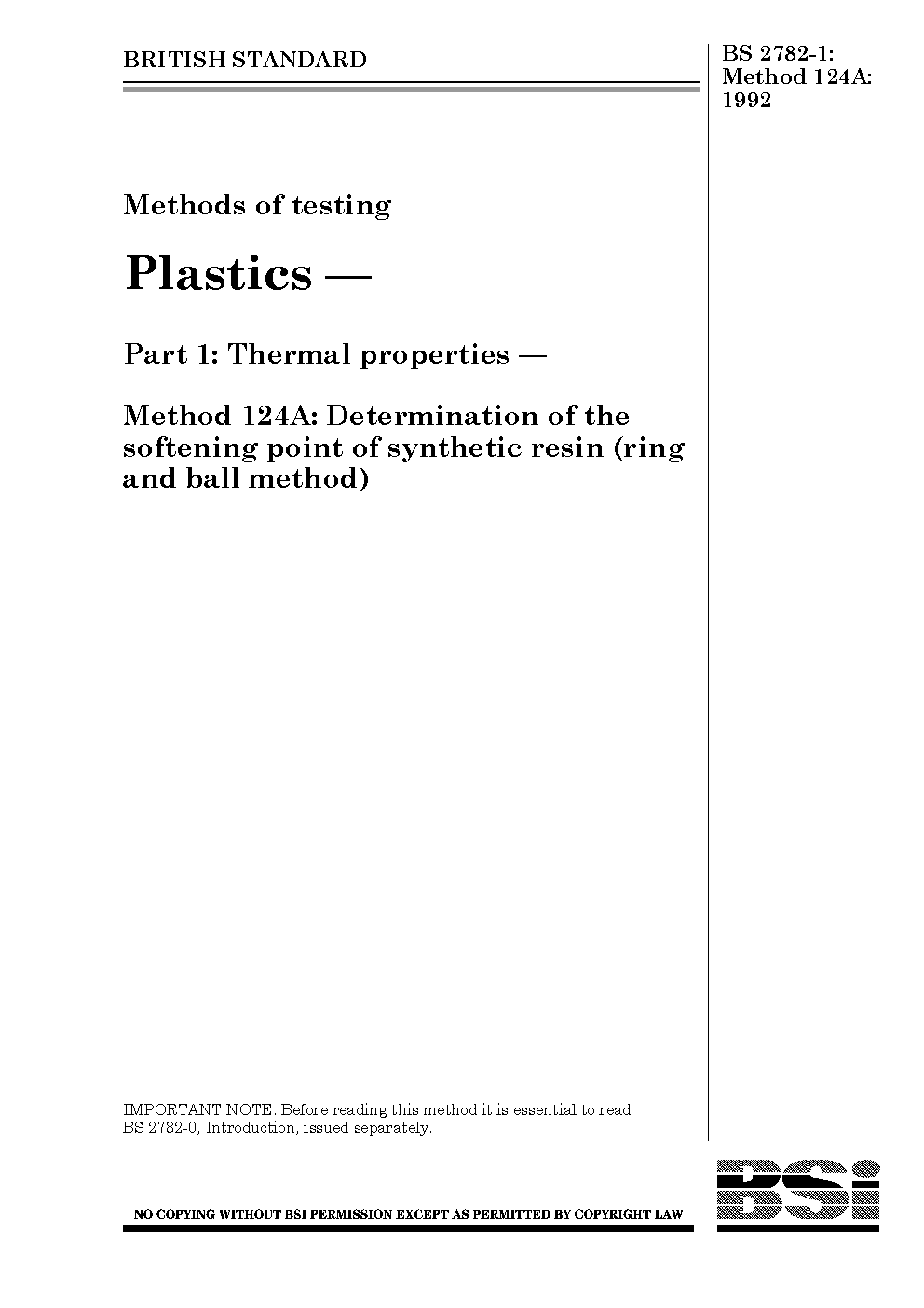 Methods of testing plastics. Thermal properties Determination the softening point synthetic resin (ring and ball method)
