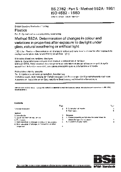 Methods of testing plastics. Optical and colour properties, weathering Determination changes in variations properties after exposure to daylight under glass, natural or laboratory light sources