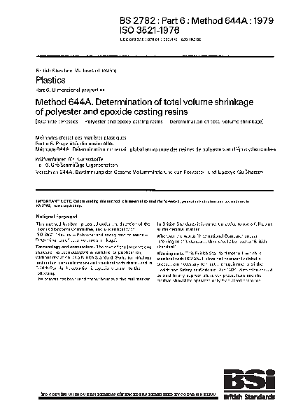 Methods of testing plastics. Dimensional properties Determination total volume shrinkage polyester and epoxide casting resins