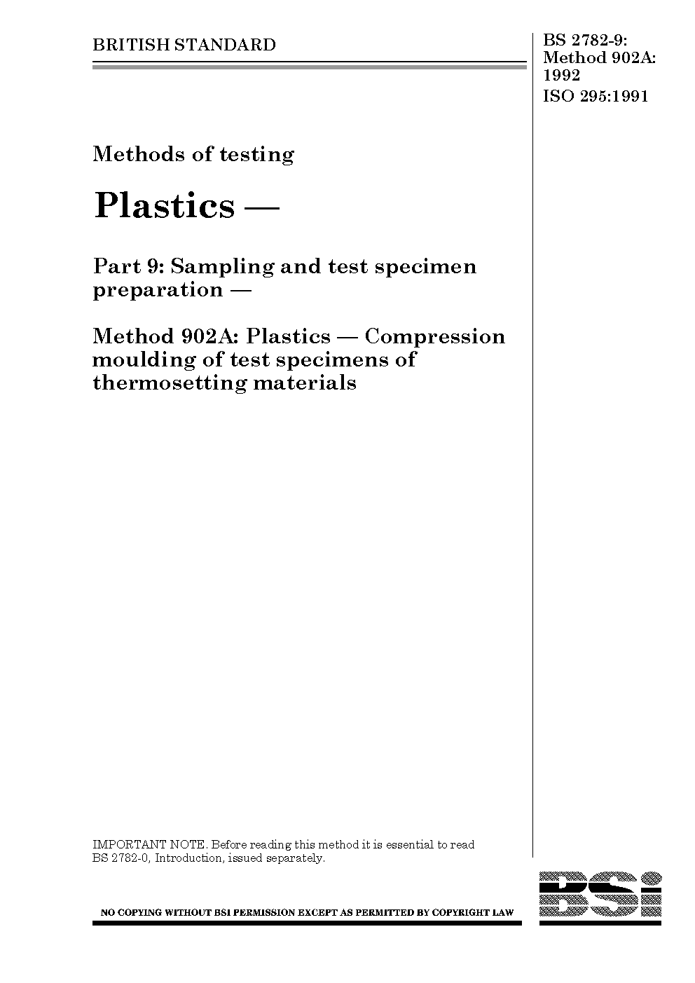 BS 2782-9 Met 902A:1992