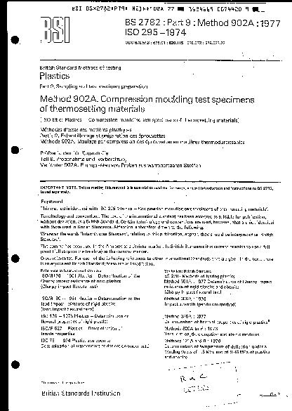 Methods of testing plastics. Sampling and test specimen preparation Compression moulding specimens thermosetting materials