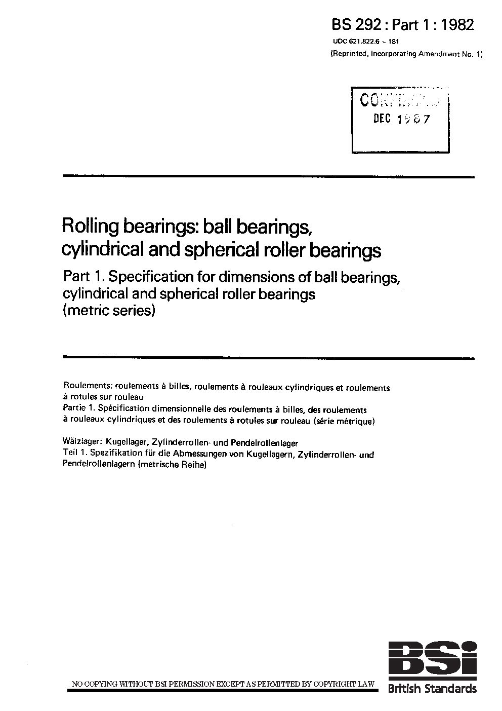 Rolling bearings: ball bearings, cylindrical and spherical roller bearings Specification for dimensions of (metric series)