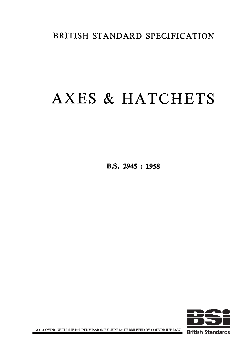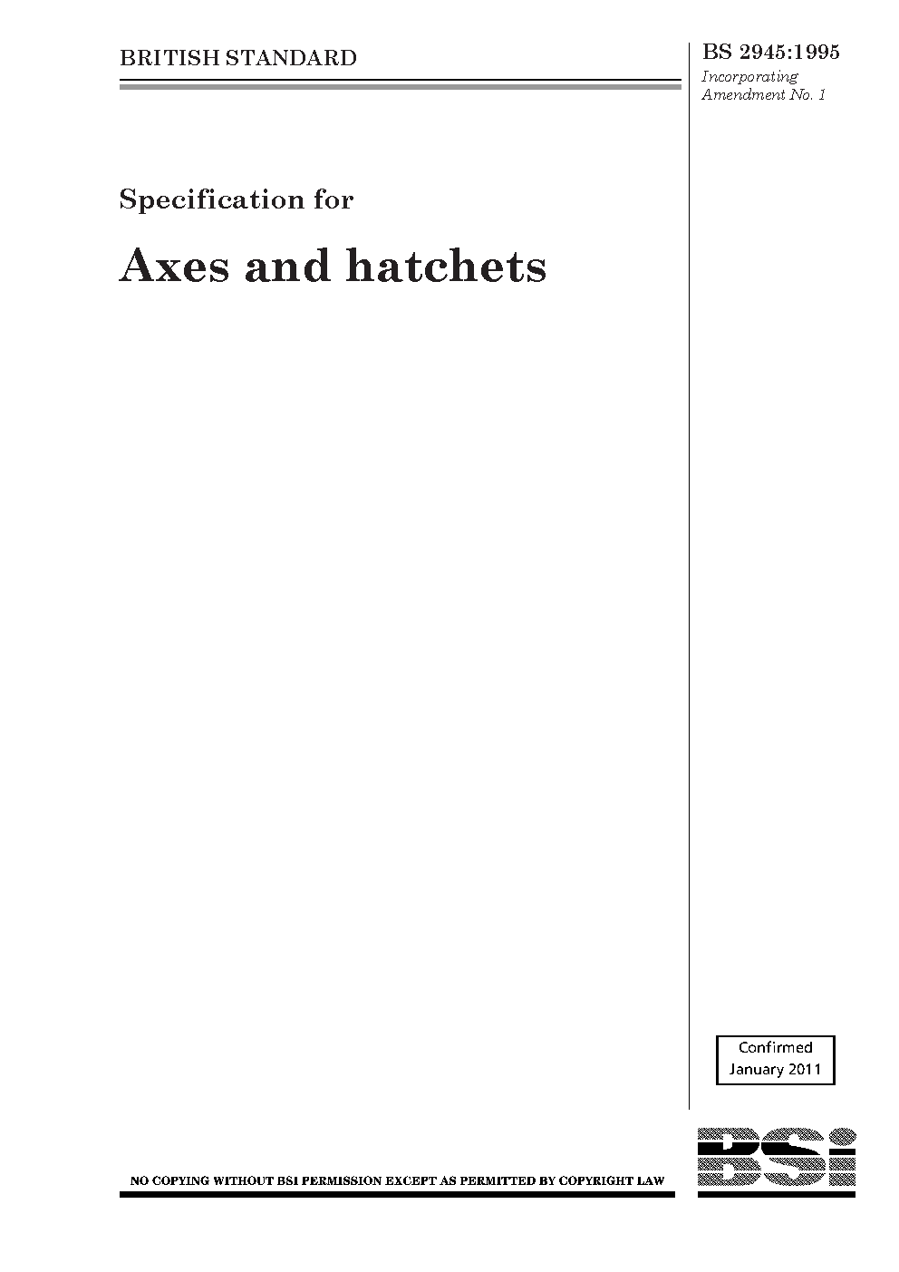 Dimensions;Heat treatment;Specifications;Hand tools;Handles (tools);Hardness;Performance testing;Axes;Impact testing;Steels;Marking