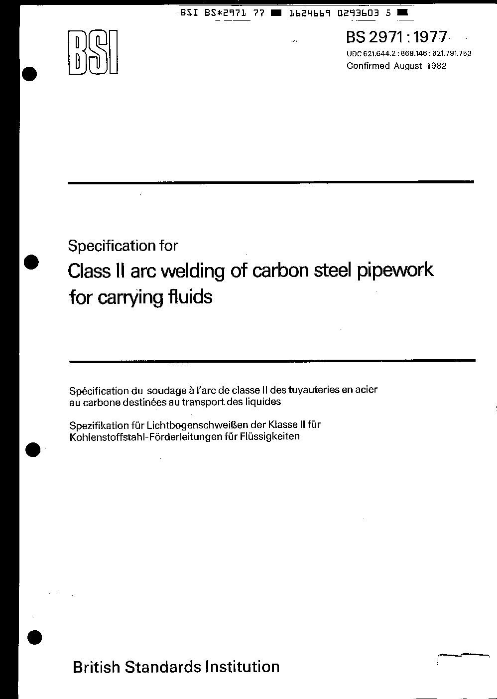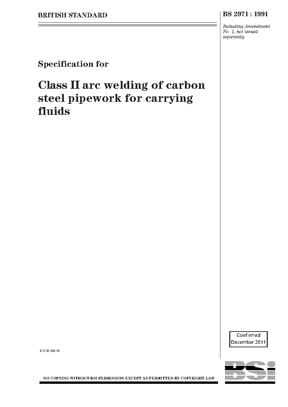 Specification for class II arc welding of carbon steel pipework for carrying fluids