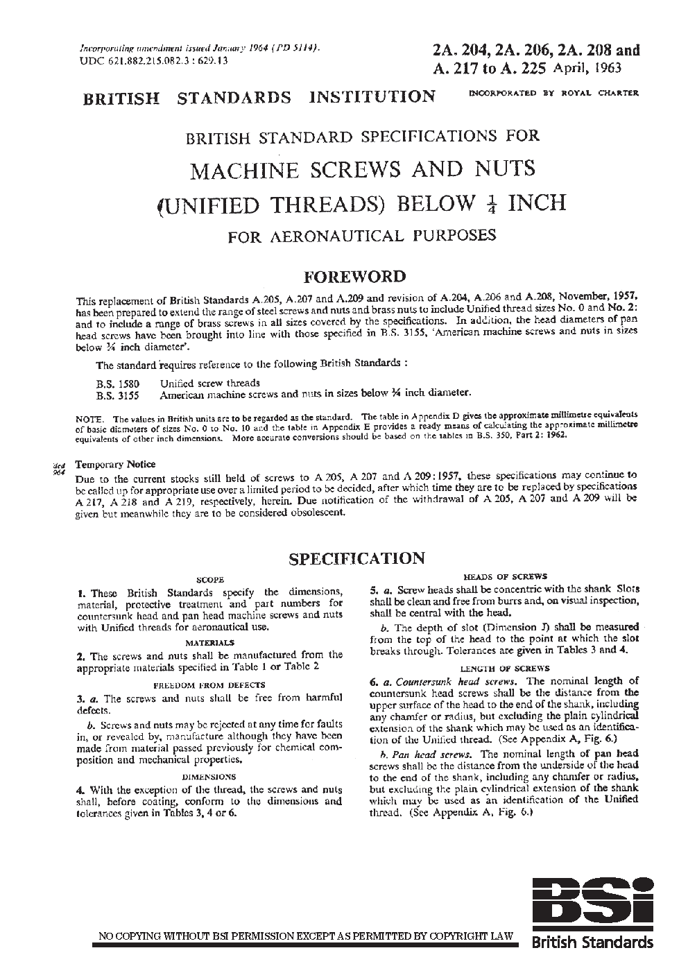 BS 2A 204; 2A 206 [...]:1963 (R2007)